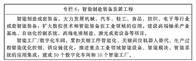 2.智能制造成套装备。坚持高端引领、整机带动,突破关键核心部件制造和系统解决方案、智能装置耦合、工业大数据应用等集成应用瓶颈,提升智能化集成应用能力,推动智能矿山综采、智能电网等优势装备产品智能化升级,培育一批千亿级智能制造成套装备产业集群。紧跟市场需求变化趋势,加快发展车身自动化焊装、专用智能化生产线、厂内智能物流等智能成套装备,推动纺织服装、食品、轻工、化工、电子等产业示范应用试点建设,发展具有信息自感知、智慧自决策、精准自控制的智能制造系统,进一步壮大专用智能制造装备产业规模。大力发展高速精密重载轴承、高速精密齿轮传动装置、伺服控制机构、液压气密元件及系统、智能仪器仪表等关键零部件,提升“四基”(核心基础零部件〔元器件〕、先进基础工艺、关键基础材料和产业技术基础)产业发展水平,为智能制造成套装备生产提供坚实支撑。