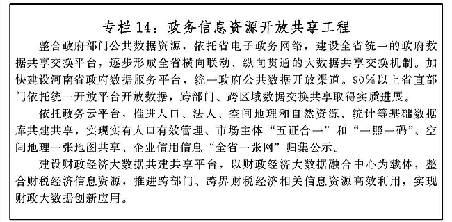 加强信息资源共享。加强信息资源规划,全面提升信息采集、处理、传输、利用、安全能力。推进全省政务和公共服务数据资源整合,加强省级政务数据中心建设,统筹市级政务数据中心布局,形成全省统一的政务数据服务体系。推进政府门户网站向政务云平台迁移,实现省、市、县三级数据开放共享。加快建设人口、法人、空间地理和自然资源、宏观经济、经济户口、财政税收、信用、统计、文化等基础信息资源库目录体系和交换体系,建设基础信息资源共享平台,实现各级、各部门数据资源交换共享。研究建立政府与企业数据共享协作机制,鼓励企事业单位、社会团体和公众挖掘数据价值,提供各类社会化和商业化的增值应用服务。加快公益性信息资源的社会化综合开发利用,支持互联网企业参与公益性信息资源服务云平台建设运营,促进公益服务精准化、网络化。开展社会化交易型信息资源备份和认证,确保数据可追溯、可恢复。