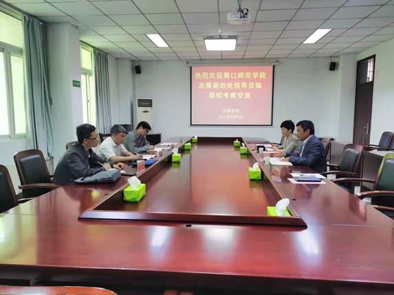5月8日,周口师范学院发展规划处处长程全、副处长何通、甘涛一行4人到我处考察交流。我处在办公楼第一会议室召开座谈交流会。发展规划处处长吴国玺、高等教育研究所所长贾晓红及相关科室负责同志参加了座谈交流。