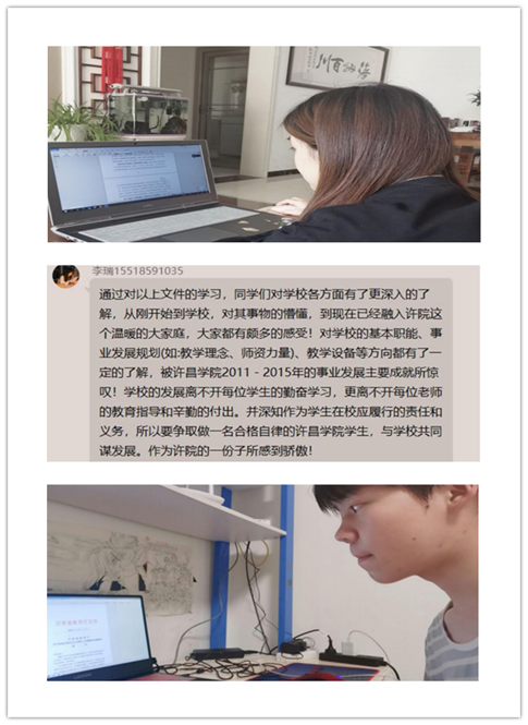 校团委结合实际情况,依托线上微博、微信、QQ 群等新媒体平台,在全校 722 个班级团支部和 97 个社团团支部中认真开展了线上主题学习活动,各个团支部在团支书的组织下,通过线上集中学习和线下自学等形式,对学校的人才培养模式、办学方向和发展规划有了更加深入的了解,爱校、荣校意识不断加强,同时对自身学业、就业规划也有了新的认识,广大青年学生作为学校的一员更加积极主动的成为学校改革发展中的参与者和贡献者。
