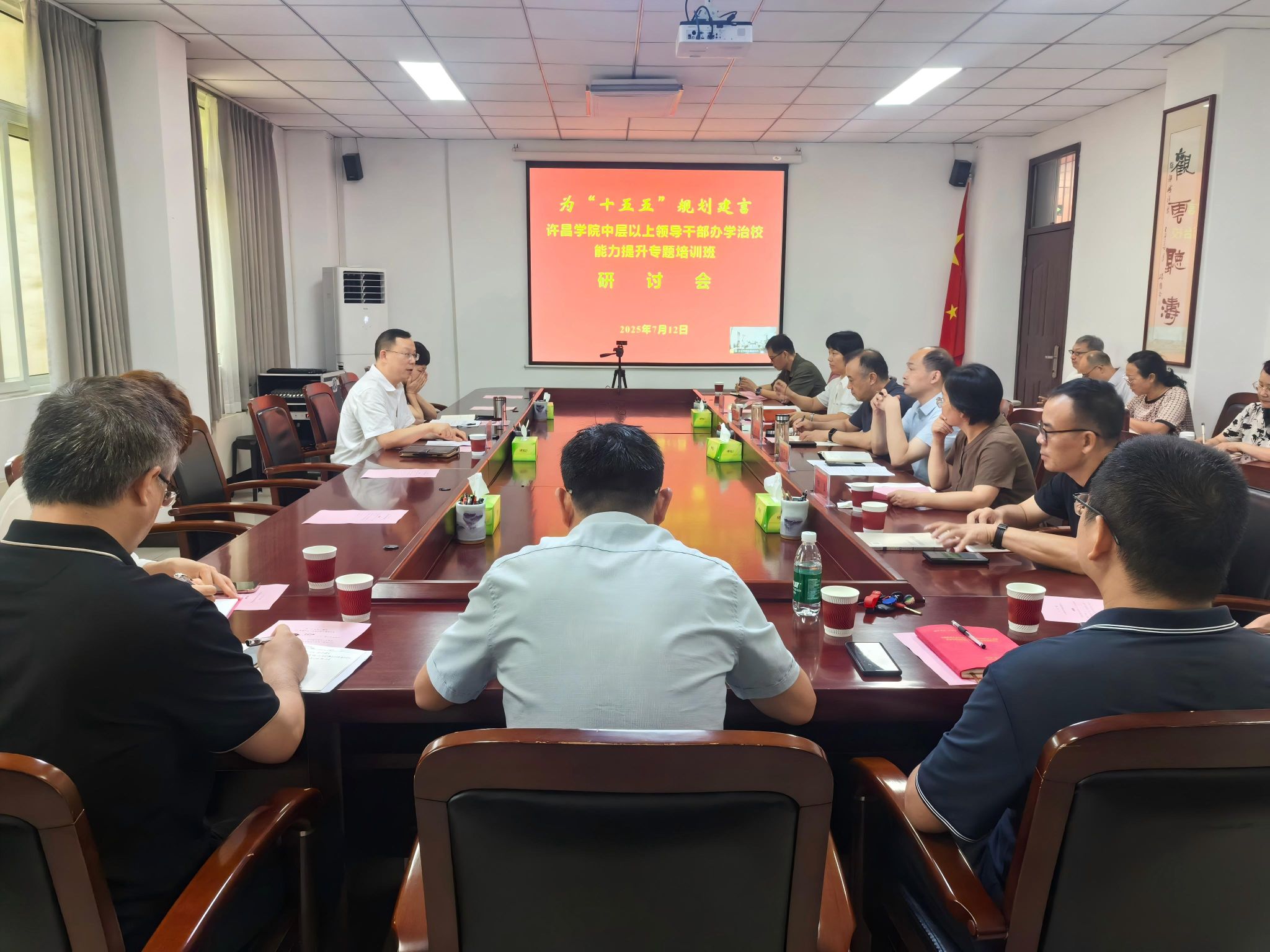 7月12日,我校在办公楼第一会议室召开“十五五”发展规划研讨会。校长郑直线上出席会议。高等教育领域资深专家、浙江外国语学院原党委书记宣勇教授应邀线上远程指导。党委宣传部、人事处、教务处、科研处、学科建设办公室、信息化管理中心等专项规划牵头部门负责人及各二级学院负责人参加会议。会议由发展规划处处长袁胜元主持。