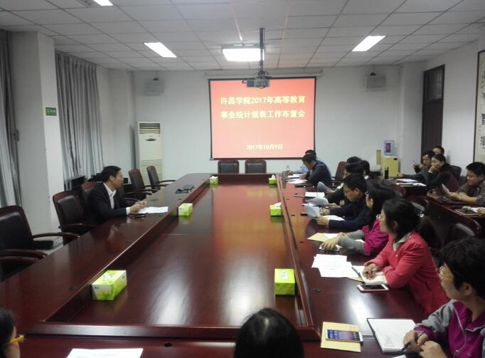 10月9日下午,学校在办公楼第一会议室召开2017年高等教育事业统计工作布置会。党政办公室、组织部、统战部、团委、学生工作部(处)、保卫部(处)、人事处、教务处、科技处、财务处、发展规划处、招生办公室、国际交流与合作处、学科建设办公室、实验室与设备管理处、基建管理处、就业指导中心、信息化管理中心、图书馆、后勤管理服务中心、继续教育学院、体育学院、五年制专科部等单位主要负责人和统计员参加会议。会议由校长助理、发展规划处处长高新战主持。